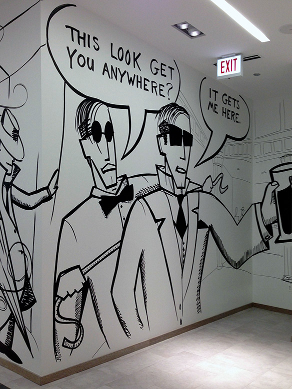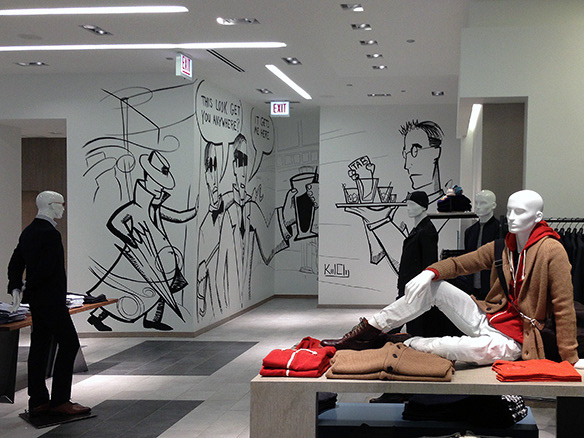 12' high, four wall acrylic marker drawing at Saks Fifth Avenue, Chicago. (Jan. 2014)