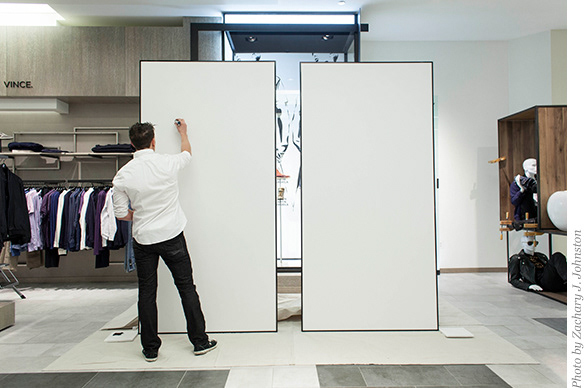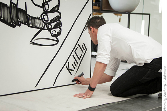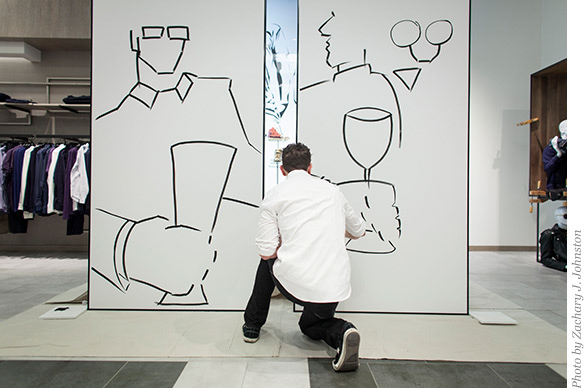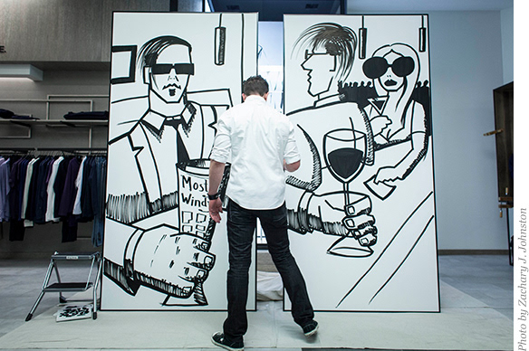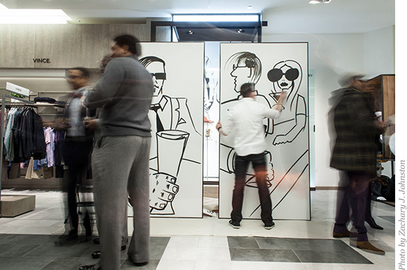 Two 4' x 8' acrylic marker drawings at The Fifth Avenue Man launch party, sponsored by Men's Book and Saks Fifth Avenue, Chicago. (March 2014)